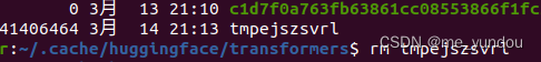打开预训练模型的下载位置,默认是~/.cache/huggingface/transformers/,使用ll命令查看已下载文件,可以看到相同名称的文件都有三份,如下图: