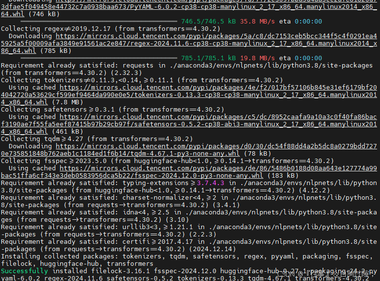 重新构建虚拟环境,并且python版本为3.8.13时,再次pip安装transformers时,成功安装