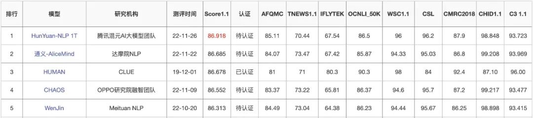 在第四季度,HunYuan又迎来全新进展,推出国内首个低成本、可落地的NLP万亿大模型,并再次登顶自然语言理解任务榜单CLUE。