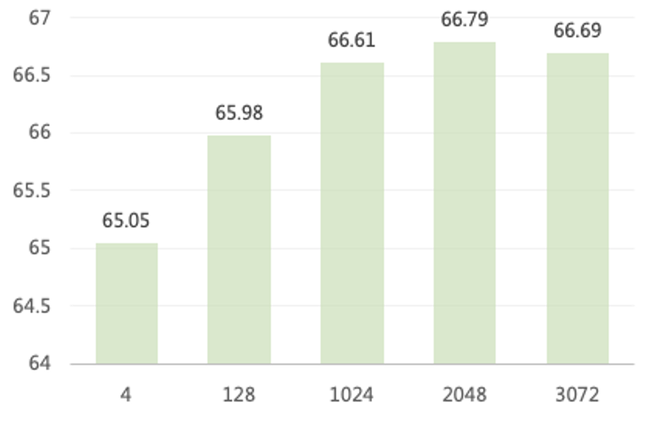 下图为专家数量和下游任务效果的关系图,当专家数量提升到2000左右,效果提升开始减弱,当进一步提升专家数量到3000,下游任务指标不增反降。