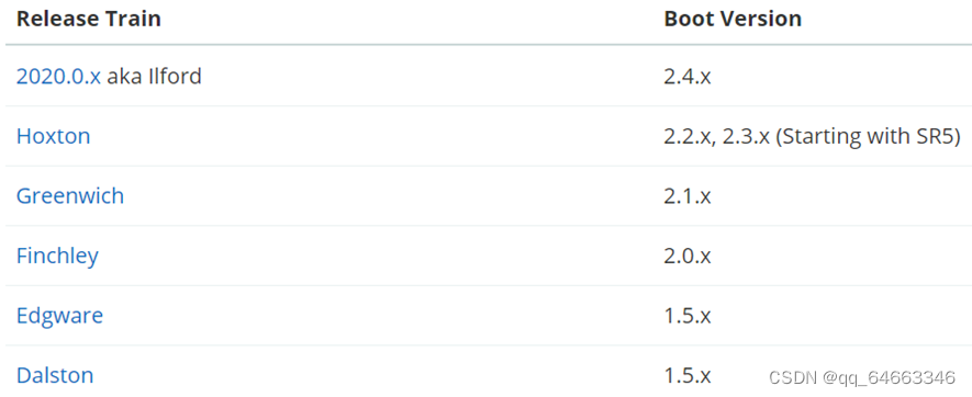 SpringCloud底层是依赖于SpringBoot的,并且有版本的兼容关系,如下: