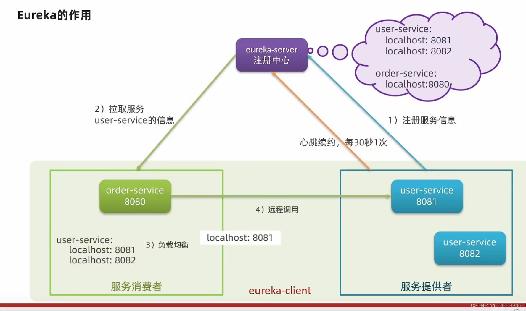 defaultZone: http://localhost:10086/eureka# 地址 信息。defaultZone: http://localhost:10086/eureka# 地址信息。提供者 : 一次业务中,被其它微服务调用的业务(提供接口给其它微服务)// 利用RestTemplate发http请求。消费者 : 一次业务中, 调用其他微服务(调用其它微服务的接口)// 创建Rest
