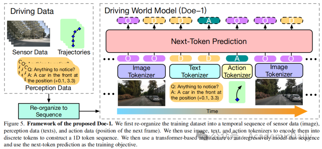 在广泛使用的 nuScenes 数据集上进行的实验证明了 Doe-1 在视觉问题解答、动作条件视频生成和运动规划等各种任务中的有效性。