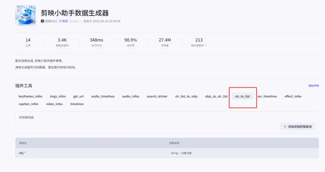 配置API参数对接剪映小助手接口,需提前获取插件调用权限