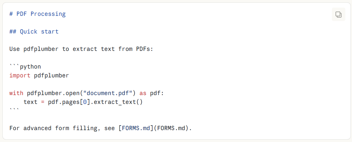 SKILL.md的主体,是一些过程性知识:工作流、示例、指导。